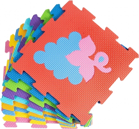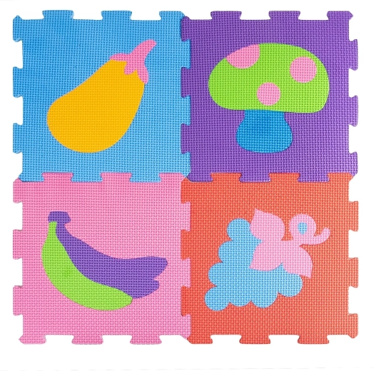 Farebná detská podložka z mäkkej peny slúži ako pohodlný koberec aj zábavné puzzle. Podporuje rozvoj motoriky, učenie farieb a tvarov a priestorové myslenie. Diely možno ukladať na podlahu alebo z nich vytvárať 3D tvary, ako sú kocky či malé stolíky. Príjemný, nešmykľavý povrch a hravé motívy ovocia zaistia bezpečné a podnetné hranie.