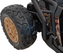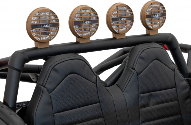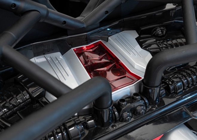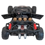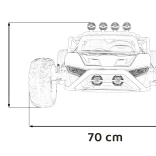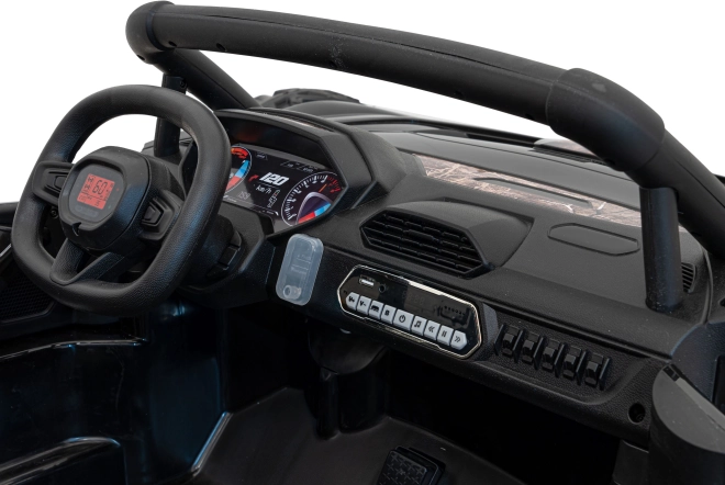 Špeciálne navrhnuté sedadlá z ekokože zaisťujú pohodlie a bezpečnosť vďaka pásom, zatiaľ čo otváracie dvere dodávajú realistický vzhľad. Auto obsahuje pokročilý audio panel s MP3, AUX, USB a Bluetooth pre najlepšie zvukové zážitky počas hry.