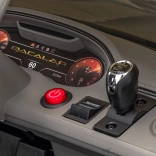 Bezpečnosť a pohodlie zabezpečujú mäkké EVA kolesá s výborným tlmením, sedadlo z eko kože s prepracovaným prešívaním a diaľkové ovládanie 2,4 GHz s tromi rýchlosťami a núdzovým tlačidlom STOP. Svetelný balík s prednými a zadnými LED svetlami dodáva na realistickosti. Multimediálny panel ponúka Bluetooth, USB, MP3, predinštalované melódie a AUX vstup na pripojenie telefónu alebo prehrávača.