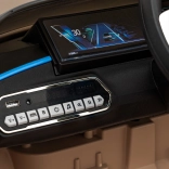 Ovládanie je plynulé vďaka režimu Soft Start a voľbe jazdy vpred/vzad s 2 rýchlosťami. Rodičovský dohľad zabezpečuje ovládač 2,4 GHz s tromi rýchlosťami a funkciou núdzového zastavenia. Audio panel ponúka prehrávanie cez USB, Bluetooth, AUX aj vstavané melódie a klaksón na volante.