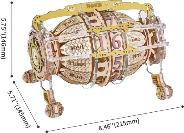 Krásne navrhnutý kalendár s mechanickými pomôckami, ktoré si môžete sami zložiť. Sú to skutočné hodiny, ktoré ukazujú presný čas. Ak máte radi remeslo, bude to ideálna voľba do vašich zbierok. Bude to pre Vás výzva!