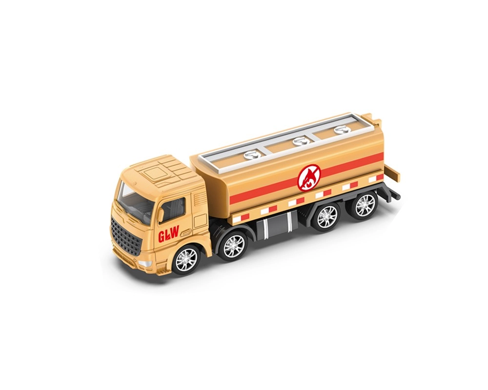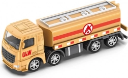Béžový cisternový kamión s valcovou nádržou, červenými pruhmi a logom ponúka plynulý pohyb vďaka voľne sa otáčajúcim kolesám. Ideálny na hru s prepravou kvapalín a rozšírenie „dopravného sveta“ detí.