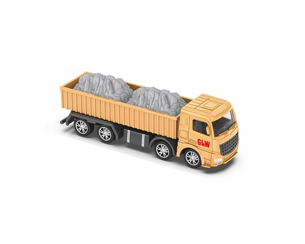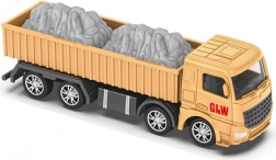 Robustný sklápač s dlhým otvoreným ložným priestorom a imitáciou kameniva podporuje hru na stavenisku. Detailná kabína, viac náprav a lesklé kolesá zvyšujú realistickosť aj zábavu.