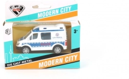 Štýlové autíčko pre malých záchranárov aj policajtov: kovový model s otváracími dverami a pull-back pohonom. Dostupné v 4 dizajnoch (polícia/sanitka), skvelé pre deti od 3 rokov.