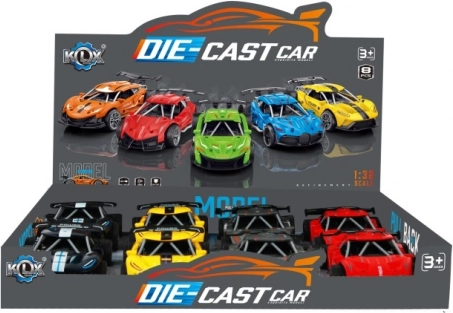 Kovový model pretekárskeho auta s funkciou pull-back: natiahni a choď. Odolné prevedenie, realistický dizajn a zábava bez batérií pre deti aj fanúšikov áut.