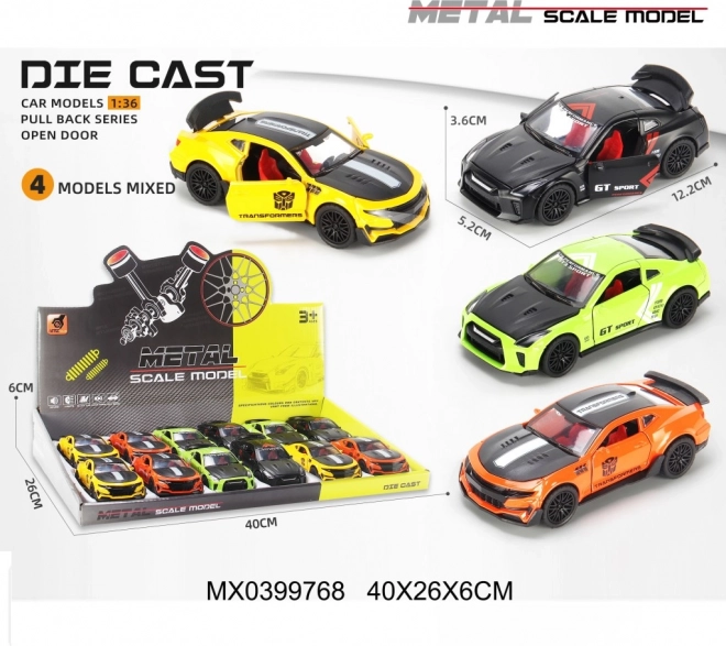 Objavte realistický kovový model športového auta v mierke 1:36. Vďaka pevnému spracovaniu a otváracím dverám pôsobí autíčko autenticky a skvele padne do ruky. Funkcia pull back sa postará o svižnú jazdu – stačí potiahnuť dozadu a vyraziť.