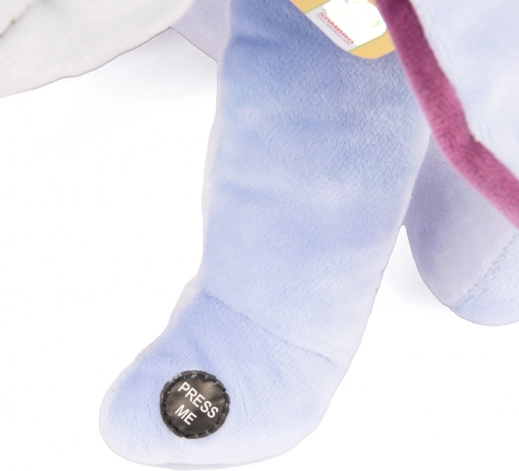 Tento roztomilý plyšový oslík z rady Disney Classic prináša zábavu a množstvo radosti deťom aj dospelým. Oslík má jemné fialové telíčko, dlhé uši a ružovú mašličku na chvostíku. Stlačením ľavej ručičky počujete zvukové efekty, ktoré potešia a rozosmejú každého.