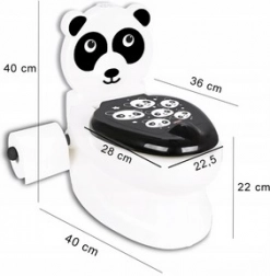 Detská toaleta – nočník so svetlom a zvukom – zvukový efekt splachovania toalety. 5-bodová protišmyková podložka, s držiakom na toaletný papier, znovu uzatvárateľné veko. Vyberateľná nádržka na jednoduché vyprázdňovanie a umývanie. Vyrába sa bez použitia kovových spojovacích prvkov, ako sú skrutky a svorníky. Nevzniká tak riziko korózie (hrdze) a predovšetkým je bezpečná pre deti. Ľahko čistiteľná a hygienická. Ľahko prenosná. Elegantný a ergonomický dizajn. Keďže vyzerá ako skutočná toaleta, udrží pozornosť vášho dieťaťa. Vaše dieťa sa ľahko naučí chodiť na toaletu…