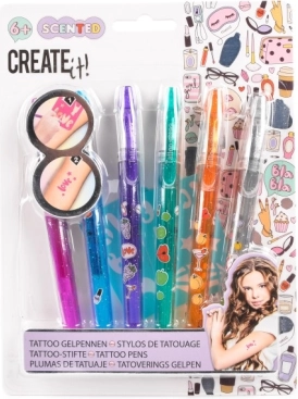 Buďte kreatívni s touto úžasnou sadou tetovaní od CREATE it!. Sada obsahuje šesť farebných voňavých pier v odtieňoch ružovej, modrej, fialovej, zelenej, oranžovej a striebornej, čo umožňuje vytvárať neobmedzené množstvo dizajnov. Každé pero je navrhnuté s dekoratívnym dizajnom a vonnou esenciou pre ešte zábavnejší zážitok.
