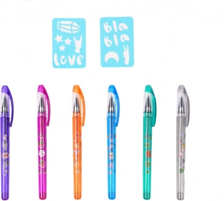 Súčasťou balenia sú šablóny, ktoré vám uľahčia kreslenie zložitejších tvarov. Dermatologicky testované a určené pre deti od 6 rokov, táto sada je úplne zdravotne nezávadná.