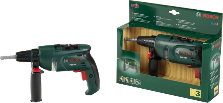 Táto detská vŕtačka v ikonickej zelenej farbe Bosch verne napodobňuje skutočný nástroj a prináša deťom zábavnú a bezpečnú hru na remeselníkov. LED svetlo a realistický zvuk pri stlačení spúšte umocnia zážitok z hrania a podporujú fantáziu aj motoriku.