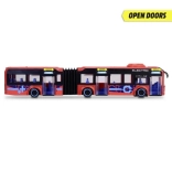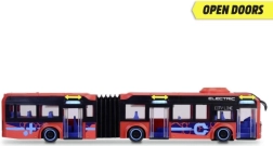Tento detailne spracovaný kĺbový autobus prináša deťom autentický zážitok z mestskej dopravy. Červené prevedenie s nápismi Electric a City Line, priehľadné okná a modré sedadlá vytvárajú pôsobivý realistický vzhľad, ktorý pozýva k dlhým hodinám hry.