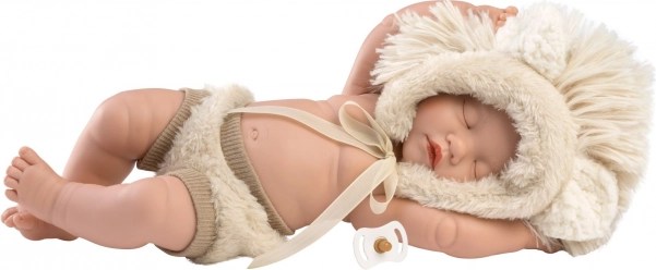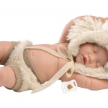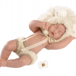 Táto spiaca realistická bábika je ideálna pre deti, ktoré chcú zažiť pocit starostlivosti o bábätko. Vďaka celo-vinylovému telu možno bábiku kúpať a jej dizajn zachytáva každý detail detského telíčka, vrátane roztomilých faldíkov. Bábika má kĺbové ruky a nohy, čo umožňuje jej polohovať a môže sedieť. Súčasťou balenia je cumlík, ktorý slúži ako štýlový doplnok. Táto bábika bola ručne vyrobená v Španielsku a je balená v krásnej darčekovej krabici.