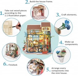 Vytvorte si vlastné malebné kvetinárstvo s pripojeným skleníkom a množstvom rastlín, políc a vyrezávaných doplnkov. Stavebnica obsahuje predrezané diely z preglejky, papierové a textilné prvky a sadu nástrojov, vďaka ktorým vznikne realistický model s nápisom „Flower Shop“ a priehľadnou sklenenou časťou. Po zostavení poslúži ako štýlová dekorácia vášho interiéru.