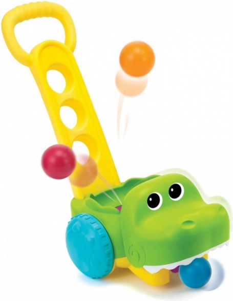 Objavte rozkošného krokodíla, ktorý sa pri tlačení mení na malý „vysávač“ na loptičky. Deti uchopia pohodlné madlo, rozbehnú hračku a sledujú, ako krokodíl zbiera farebné guľôčky do papuľky a potom ich radostne vystreľuje von. Interaktívne zvuky motivujú k ďalším krôčikom a predlžujú hru.