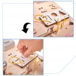 Šnurovacia topánka, gombíky a pracka podporujú trpezlivosť, koordináciu a sebabsluhu – ideálna príprava do škôlky aj školy.