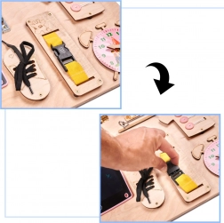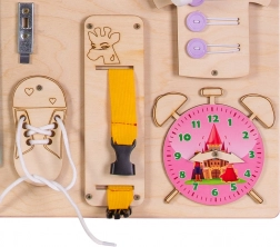 Šnurovacia topánka, gombíky a pracka podporujú trpezlivosť, koordináciu a sebabsluhu – ideálna príprava do škôlky aj školy.