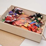 Drevené divadlo s 2 obojstrannými kulisami a 8 bábkami. Ručne vyrábané bábky s možnosťou rozšírenia o ďalšie bábky a kulisy.