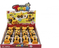 Roztomilé plastové stavebné autíčko s dĺžkou cca 9 cm na voľnobeh poteší malých vodičov už od 12 mesiacov. K dispozícii sú 3 druhy, ideálne na prvé preteky a objavovanie sveta štyroch kolies. Skvelé do detskej izby aj na cesty, balené po 12 ks v boxe (vhodné pre predajné balenie).