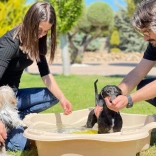 Premyslený dizajn s bezpečnými, zaoblenými hranami bráni okusovaniu, zatiaľ čo praktické drenážne drážky zabraňujú pretečeniu. Bazén je stohovateľný pre úsporu miesta a vďaka rukoväti ho pohodlne prenesiete kamkoľvek – na dvor, terasu aj na cesty so zvieratami.