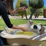 Tento priestranný bazén pre domáce zvieratá je ideálny na hygienické kúpanie aj letné ochladenie na záhrade. Ľahká a zároveň pevná konštrukcia z materiálu obohateného o mandľové škrupiny zaisťuje dlhšiu životnosť a menšiu ekologickú stopu. Dekor odolný voči vode a UV žiareniu je aplikovaný technológiou IML, takže sa nelúpe ani nevybledne.