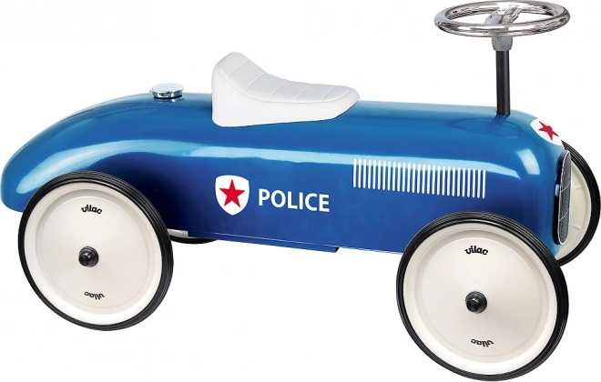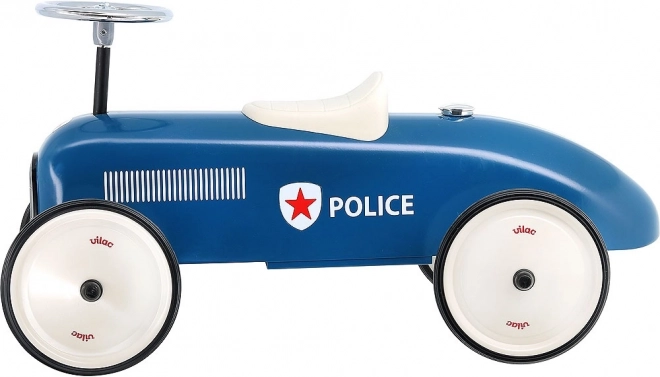 Užite si zábavu s modrým odrážadlom Vilac v štýle policajného auta. Toto odrážadlo je úplne kovové, čo zaručuje vysokú odolnosť a stabilitu. Vďaka pogumovaným kolesám má veľmi tichý chod, aj na pevnom povrchu. Je vybavené volantom, ktorý zaisťuje ľahké riadenie.