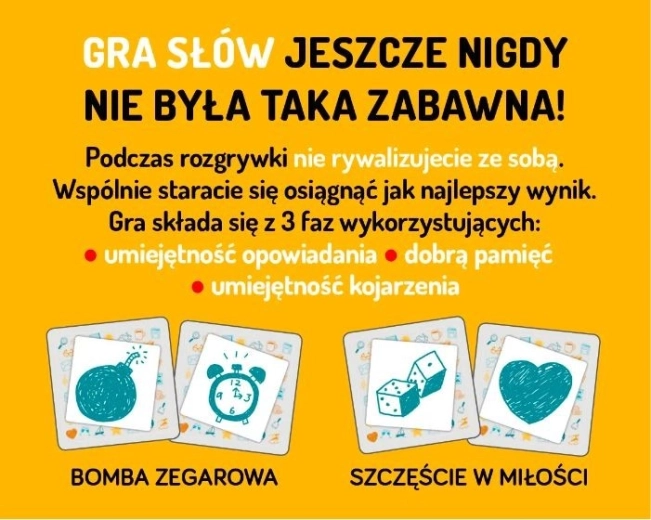 Pri hre spolu nesúťažíte! Spoločne sa snažíte dosiahnuť čo najlepšie skóre. Hra je rozdelená na 3 časti, pri ktorých využijete rozprávanie príbehu, asociačné schopnosti a dobrú pamäť.