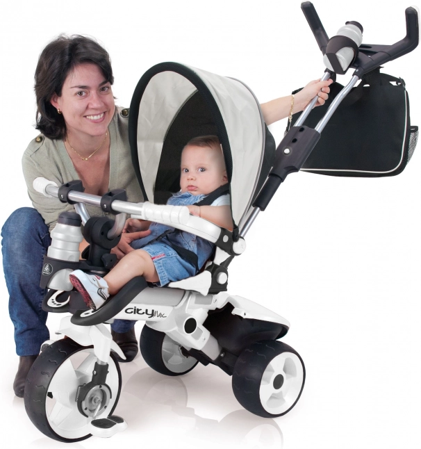 Trojkolka City Max je zárukou kvalitnej a bezstarostnej jazdy vášho dieťaťa už od prvých mesiacov. S kovovou konštrukciou a pogumovanými kolesami sa trojkolka ľahko ovláda a je veľmi tichá. Rastie s vaším dieťaťom a prispôsobuje sa jeho potrebám – od kočíka pre najmenších po nezávislé riadenie starších detí.