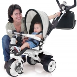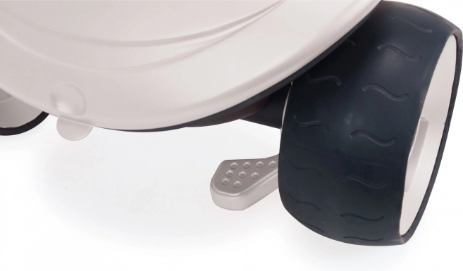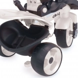 Trojkolka je vybavená kvalitnou hliníkovou konštrukciou a pogumovanými kolesami, čo zaisťuje stabilitu a tichú jazdu.