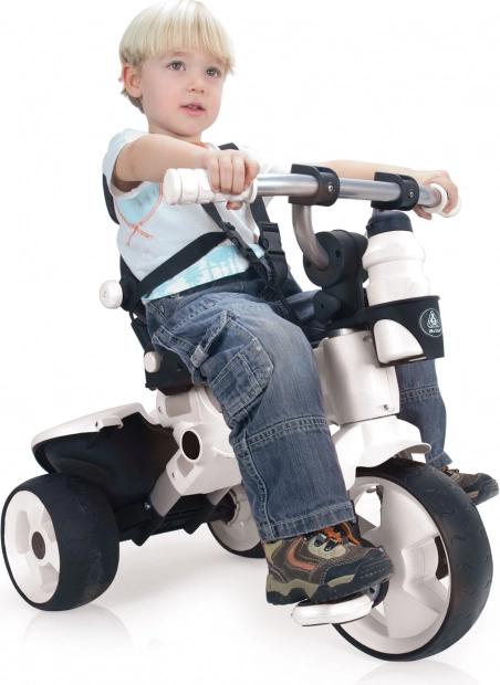 Šliapacie pedále sa dajú nastaviť napevno alebo na voľnobeh a po odstránení všetkých ochranných prvkov môže dieťa trojkolku plne ovládať samo.