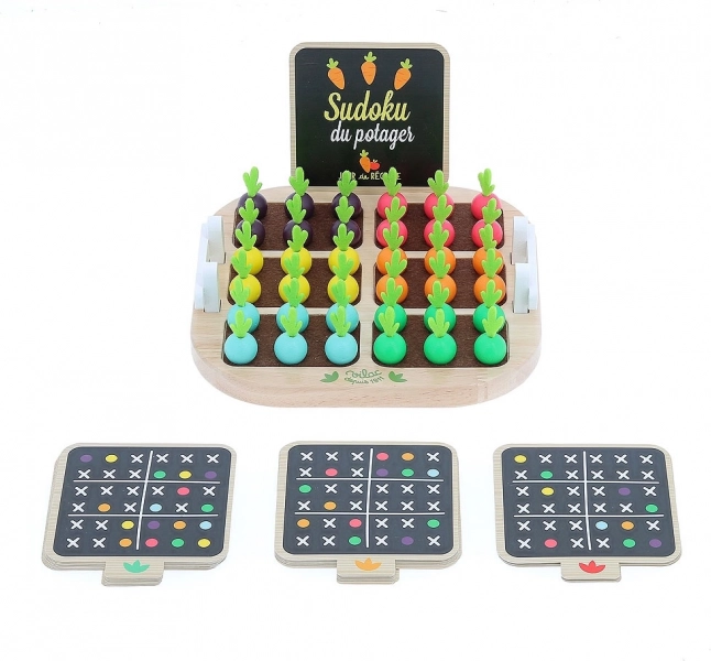 Tu je jedinečná možnosť zabaviť deti a zároveň rozvíjať ich kognitívne schopnosti. Hra Zeleninové Sudoku je vyrobená z kvalitného dreva, čo zaisťuje jej stabilitu a odolnosť. S pestrofarebnými drevenými kúskami v tvare zeleniny sa deti snažia naplniť mriežku podľa priložených kariet, bez toho aby sa v tom istom riadku, stĺpci alebo bloku opakovali farby.