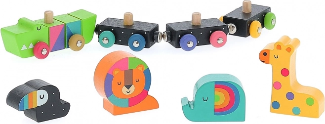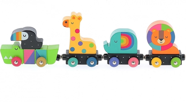 Vydajte sa s vašimi deťmi na kreatívnu cestu s farebným vláčikom zvieratiek od uznávaného ilustrátora Andyho Westface. Tento unikátny drevený set zahŕňa kocky, ktoré majú rôzne veľkosti, tvary a hýria farbami. Mašinka a vagóniky, ktoré znázorňujú zvieratá ako krokodíla, leva, slona a žirafu, sú dômyselne prepojené magnetmi. Deti si užijú nielen skladanie, ale aj spoznávanie zvieratiek.
