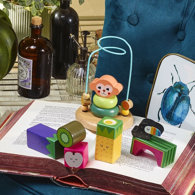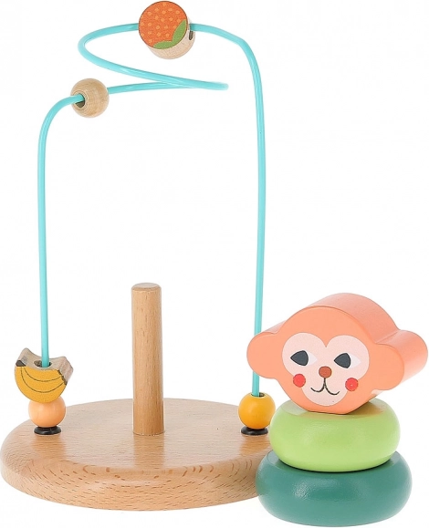 Objavte zábavný a ekologický svet ilustrácií od svetovo uznávanej Michelle Carlslund, ktorá preniesla svoje jemné a poetické motívy do tejto unikátnej hračky. Labyrint s opičkou kombinuje stohovacie prvky a farebné kovové obruče, ktoré deti motivujú k pohybu a učeniu. Interaktívny dizajn oživuje detskú predstavivosť a zároveň podporuje ich senzorimotorický vývoj.