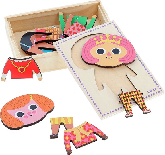 Toto drevené obliekacie puzzle ponúka deťom možnosť štýlovo obliekať postavičku Jade. So 6 rôznymi kompletmi môžu deti kombinovať outfity a rozvíjať svoju predstavivosť.
