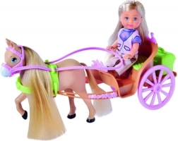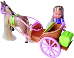 Súprava Evi Love v romantickom kočiari prináša deťom nekonečné možnosti príbehov – od vychádzok kráľovnej či princeznej až po každodennú starostlivosť o koníka. Evi pohodlne sedí, drží opraty a jej ladiaci outfit podčiarkuje čarovnú atmosféru hry.