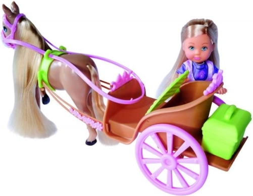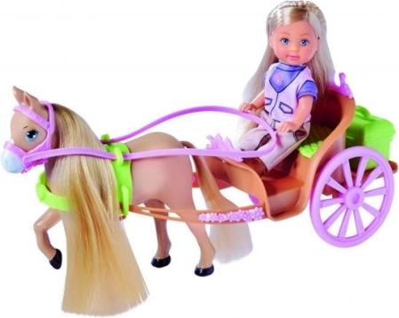 Koník má dlhú hrivu a chvost, ktoré možno česať a zdobiť priloženými sponkami. Za sedadlom kočiara sa ukrýva tajná schránka na drobnosti a príslušenstvo – súčasťou je aj zelená krabička na potreby ku koníkovi. Hra s Evi podporuje predstavivosť, emočný rozvoj aj zodpovednosť.