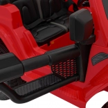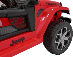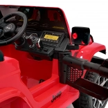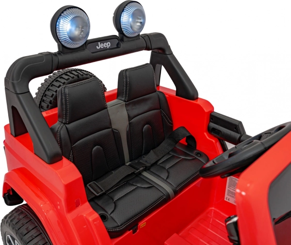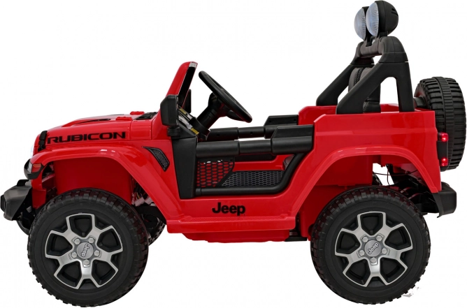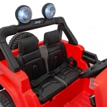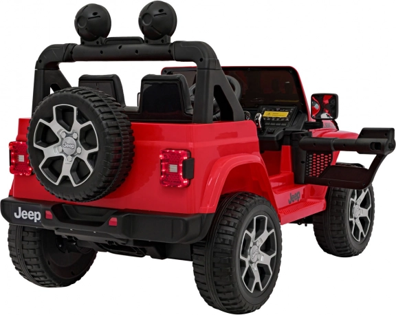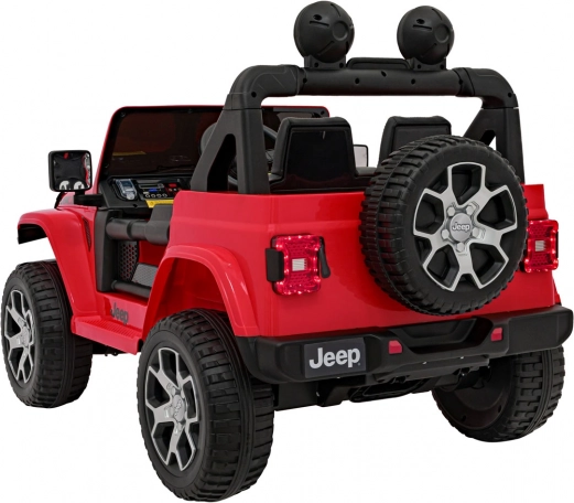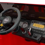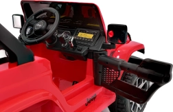 Štýlové detské elektrické auto JEEP Wrangler Rubicon v červenej farbe ponúkne skutočný off-road zážitok. Má 4 motory 45 W, silný akumulátor 12 V / 10 Ah, mäkké EVA kolesá a sedadlo z ekokože. Bezpečie zaistí diaľkový ovládač 2,4 GHz so STOP tlačidlom a bezpečnostnými pásmi. Zábavu doplní FM rádio, MP3, Bluetooth a LED svetlá.