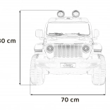 Ikonický dizajn JEEP Wrangler Rubicon v detskom podaní kombinuje výkon, komfort a bezpečnosť. Štyri motory 45 W s funkciou plynulého rozjazdu poskytujú istú jazdu vpred aj vzad, mäkké EVA kolesá a zadné tlmiče zabezpečujú pohodlie aj na nerovnom povrchu. Praktická skladacia rukoväť uľahčí prenášanie, zatiaľ čo otváracie dvere a úložné priestory vpredu aj vzadu potešia pri každej vychádzke.