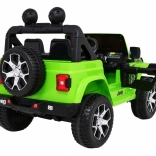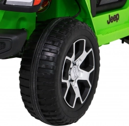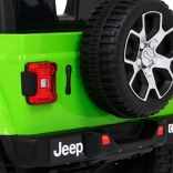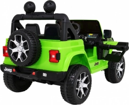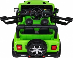 Elektrické autíčko JEEP Wrangler Rubicon v zelenej farbe je skvelé na jazdu na záhrade aj na pevnom povrchu. Vďaka pohonu 4×45 W, odpruženiu zadnej nápravy a veľkým EVA kolesám 29 × 11,5 cm ponúka pohodlnú a istú jazdu. LED predné svetlá a horný svetelný panel zvýraznia autentický off-road vzhľad, zatiaľ čo otváracie dvere a predný aj zadný úložný priestor potešia praktickými detailmi.
