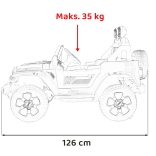 Robustný dizajn JEEP Wrangler Rubicon dopĺňajú jasné predné LED svetlá a horný svetelný panel. Otváracie dvere a detailná maska dodajú každej jazde realistický zážitok.