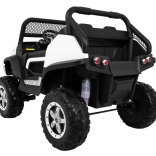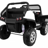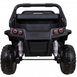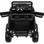 Veľkokapacitná batéria 12 V / 14 Ah poskytne dlhé jazdenie, zatiaľ čo rodičovský ovládač 2.4G s voľbou 3 rýchlostí a núdzovým STOP tlačidlom drží všetko pod kontrolou. Deti potešia LED svetlá vpredu aj vzadu, otváracie dvere, zadný úložný priestor a multimediálny panel s Bluetooth, USB, MicroSD, AUX (možnosť mikrofónu), MP3 a FM rádiom.