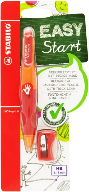 STABILO EASYergo je navrhnutá špeciálne pre detskú ruku praváka. Vďaka ergonomickému tvaru a protišmykovému úchopu si deti osvoja správne návyky držania písacej potreby a dosiahnu plynulejšie, čitateľnejšie písmo bez zbytočnej únavy. Silnejšia tuha HB s priemerom 3,15 mm je odolná voči lámaniu a zabezpečuje mäkký, plynulý ťah.