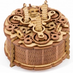 Krabička je vyrobená z kvalitného brezového dreva s detailnými laserovými výrezmi. Odolná konštrukcia zaručuje dlhú životnosť a opakované použitie.