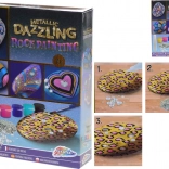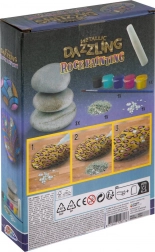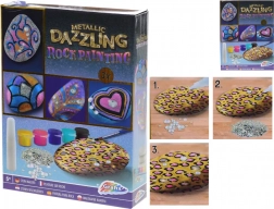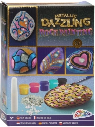Vytvárajte jedinečné dekorácie a darčeky s lesklými metalickými efektmi. Sada je vhodná pre začiatočníkov aj pokročilých – jednoducho otvorte farby, popustite uzdu fantázii a ozdobte prírodné kamene originálnymi vzormi. Vďaka trblietkam a samolepiacim kamienkom dosiahnete pôsobivý výsledok behom chvíľky.