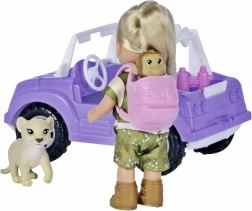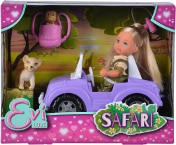 Obohaťte hru vašich detí o imaginárne dobrodružstvá s bábikou Evičkou Safari. Tento úžasný set poskytuje nekonečné možnosti hrania a predstavivosti vďaka detailne prepracovaným doplnkom. Súčasťou sady je bábika Evička v safari oblečení, ktorej výška je 12 cm, a jej terénne auto dlhé 16 cm, ideálne na cesty do džungle. Nechýba ani batôžtek na všetky nevyhnutnosti, malá opička, levíča a ďalekohľad na detailný prieskum.