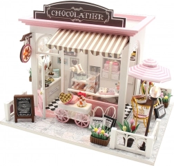 Čokoládovňa v jemných ružovo-bielych tónoch pôsobí ako malý výkladný priestor s vitrínami plnými „dobrôt“, štýlovou markízou a rozkošným posedením. Hotový model krásne vynikne na poličke a stane sa originálnym darčekom pre kreatívne duše od 14 rokov.