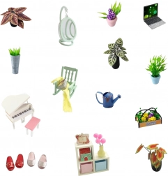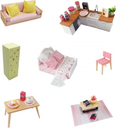 Súčasťou vybavenia sú miniatúrne kusy nábytku, ktoré dodajú domčeku realistický vzhľad.
