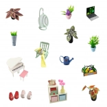 Miniatúra obsahuje detaily ako obrazy, rastliny a hudobné nástroje pre estetický nádych.