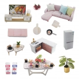 Obývací kút, jedáleň, kuchyňa aj spálňa s miniatúrnym nábytkom a dekoráciami vytvárajú uveriteľný a pôsobivý celok.