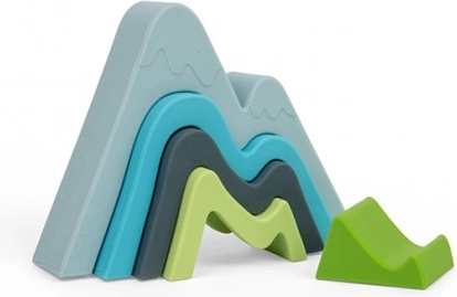 Päť tvarovaných kusov v tvare hôr sa dá ukladať, vkladať jeden do druhého a kombinovať do nekonečna. Deti si tak rozvíjajú fantáziu a jemnú motoriku.